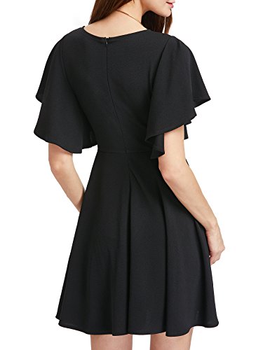 Scoop Neck, Flutter Sleeve, High Waist, Above Knee, Invisible Zipper Back