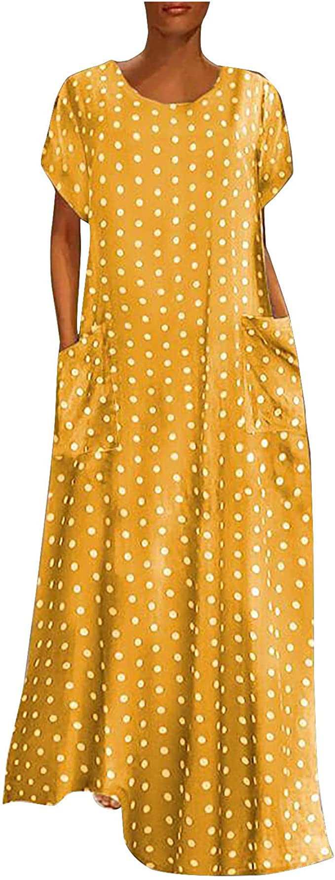 Yellow Summer Short Sleeve Long Dress Fancy Cocktail Dress Party Elegant Swing Dress Maxi A-line Dress - Amhomely